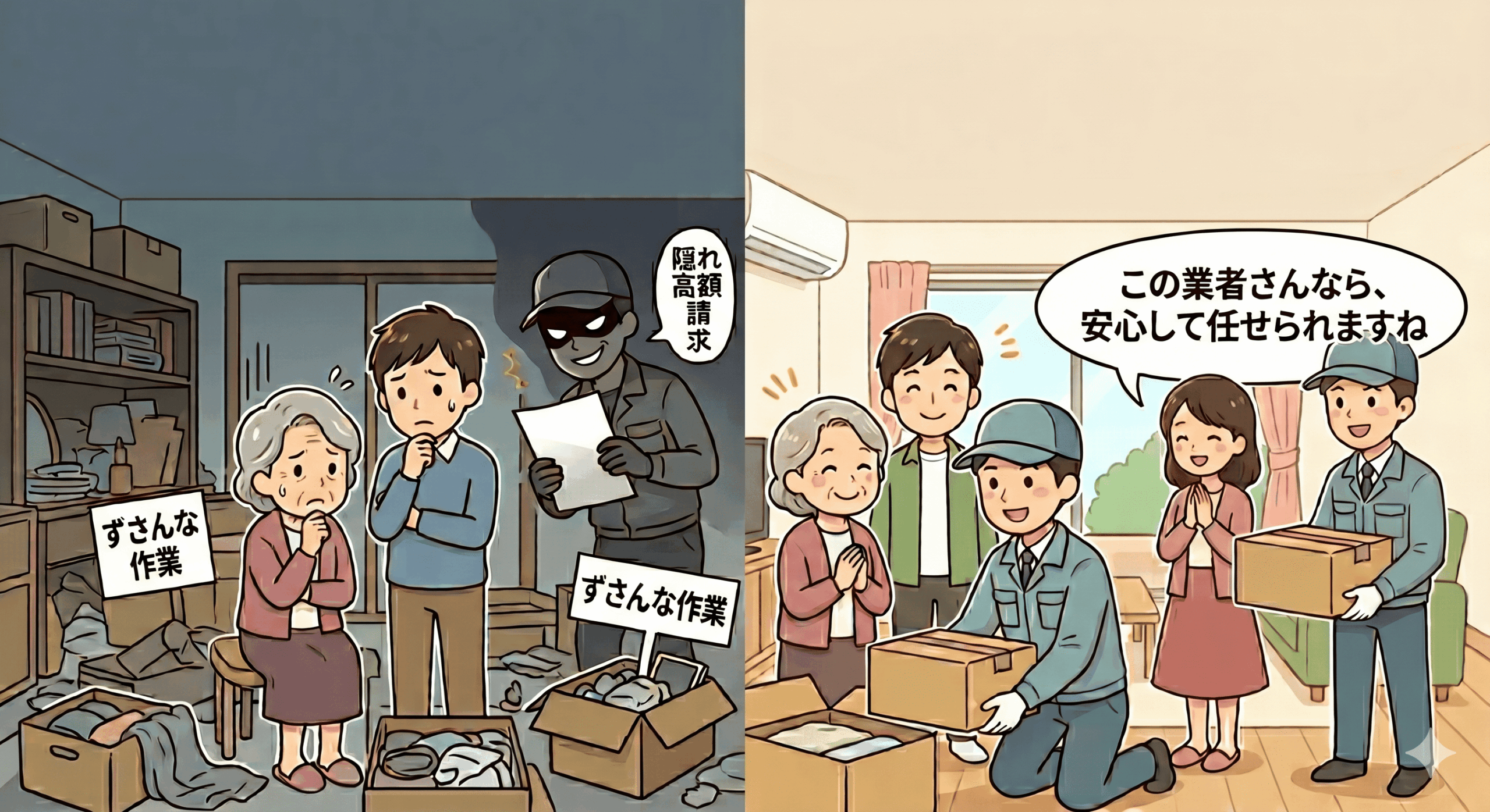 【2026年版】遺品整理のトラブル急増中?悪徳業者の巧妙な手口と「後悔しない業者選び」5つの鉄則